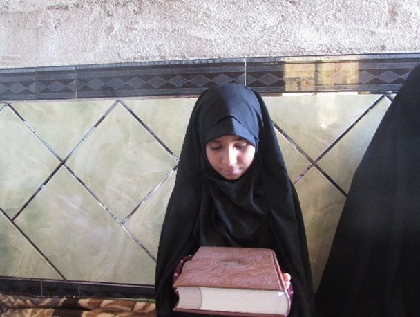 دختر شهید مدافع اسلام در دیدار چندی قبل خانواده شهدای مدافع اسلام با رهبر انقلاب، از ایشان یک جلد قرآن هدیه گرفت.