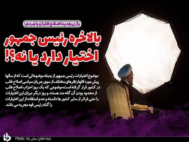 اصلاح طلبان باید توضیح دهند که آیا یک شبه اختیارات رئیس جمهور کاهش پیدا کرده یا سالهاست این رویه در قانون کشور مشهود است اگر بر این باروند که هیچ رئیس جمهوری از اختیارات بیش از 15 درصد برخوردار نیست با چه انگیزه تمام قد پشت حسن روحانی ایستاده و از او حمایت کردند تا وی راهی پاستور شود، شاید نظریه پردازان اردوگاه اصلاحات در سودای دست اندازی بر قدرت قوه مجریه از طریق کاندیدای مورد حمایتشان بودند.