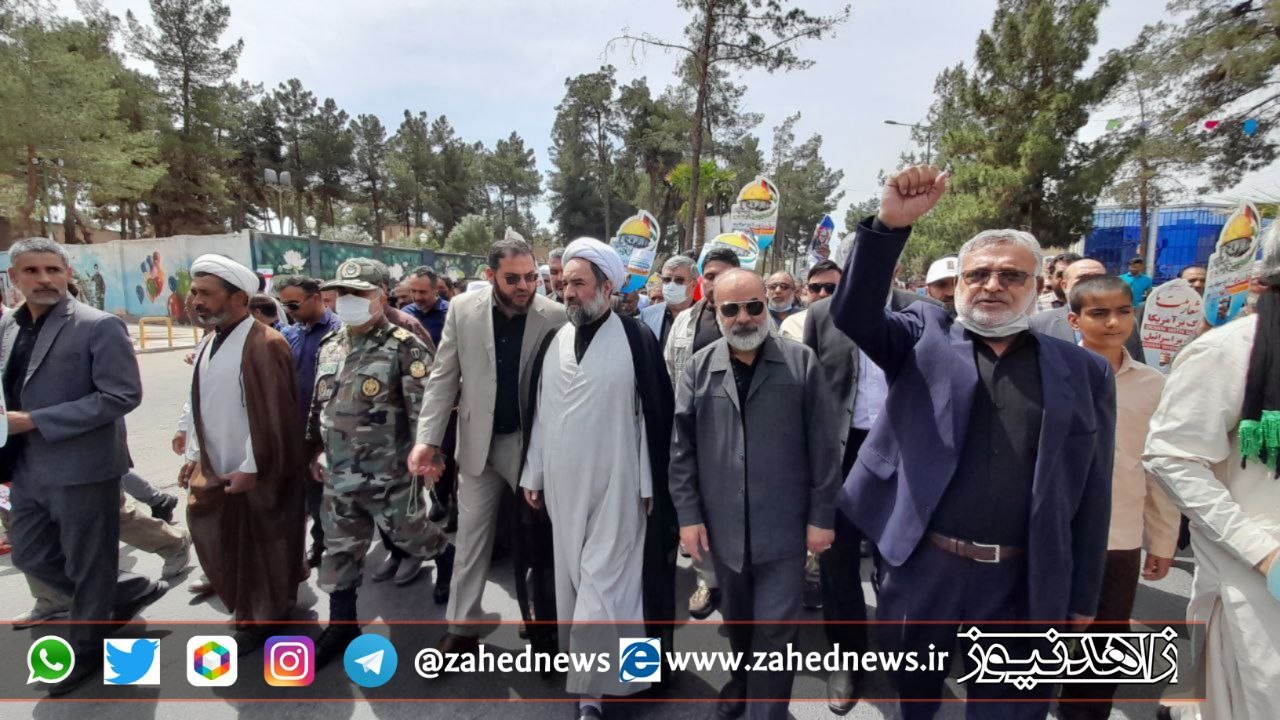 مردم و مسئولین زاهدانی همزمان با سراسر کشور با شرکت در راهپیمایی روز قدس فریاد دادخواهی سر دادند.