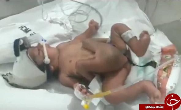 به گزارش زاهدانه به نقل از باشگاه خبرنگاران، " لالی تاما" نام زن 23 ساله هندی است که به تازگی نوزاد پسری عجیب بدنیا آورده است. این نوزاد دارای چهار پا است. تولد این نوزاد عجیب الخلقه موجب شگفتی وی و شوهر 26 ساله اش، " چناباساوا" شده است. این زوج که دارای یک پسر 3 ساله دیگر نیز هستند تصمیم گرفته اند تا از فرزند تازه متولد شده شان نگهداری کنند.