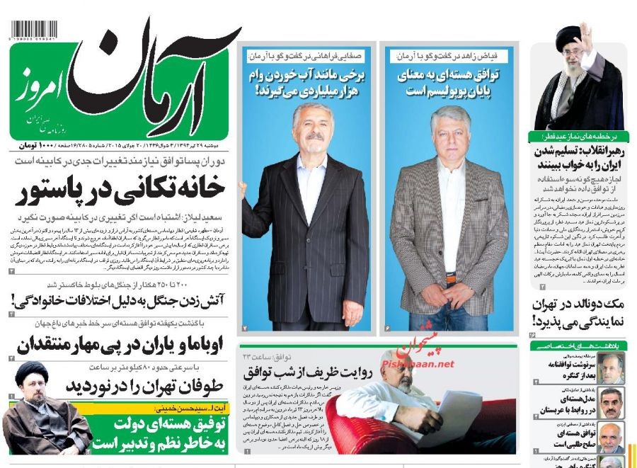 آرمان امروز ، دوشنبه ۲۹ تير ۱۳۹۴
