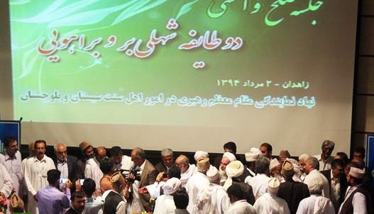 با تلاش نهاد نمایندگی مقام معظم رهبری در امور اهل سنت استان سیستان و بلوچستان و همکاری شماری از معتمدین و ریش سفیدان طوایف جلسه صلح دو طایفه براهویی و شهلی بر بعد از پانزده سال نزاع و بیش از بیست کشته روز جمعه در سالن همایش های این نهاد برگزار گردید.