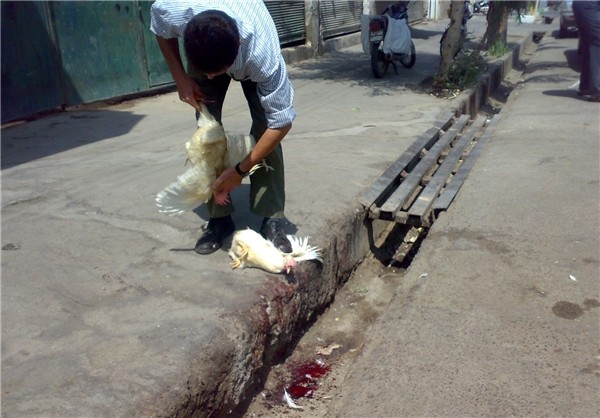 از آنجایی که مغازه های عرضه کننده مرغ کشتار روز و مرغ منجمد در سطح شهر به وفور یافت می شود اما همچنان سر بریدن مرغها در کنار جداول خیابان یا در مقابل خانه ها هنوزهم به چشم می خورد و این نحوه ذبح طیور در معابر شهری عاملی برای انتقال بیماری به کودکانی است که در این محوطه ها مشغول بازی و تفریح هستند، از طرفی با توجه به گرم بودن هوا بوی خون، پرهای معلق در هوا و اضافه های مرغ منجر به نارضایتی اهالی در محله ها شده و تذکرآنها به این کسبه ها هیچ اثر سویی در جمع آوری ذبح غیر بهداشتی مرغ نداشته است.