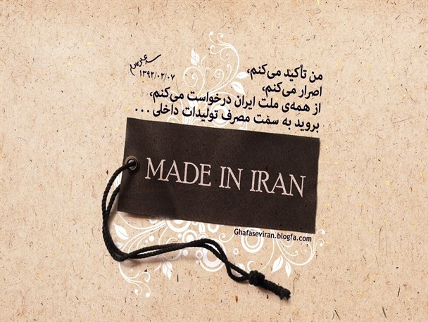 حال می پرسم چهار سال از این حکم گذشت، چقدر به این فریضه عمل کرده ایم رفقا! امروز اگر سرمان را بچرخانیم چند کالای ایرانی در خانه این بچه حزب اللهی وجود دارد و چند کالای خارجی، چند درصد از زندگی خود را ایرانی سازی کرده ایم؛ آیا تولید داخلی در خانه ما غریب نیست؟!
