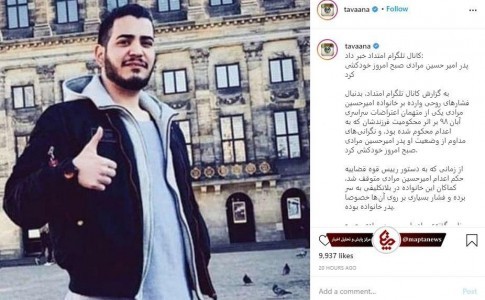 اما صفحه اینستاگرام توانا وابسته به وزارت خارجه آمریکا، که اخبار «اعدام نکنید» را گسترده پوشش میدهد، در خبر مربوط به خودکشی پدر مرادی، این صحبتهای مادر و وکیل مرادی را سانسور کرده است!
