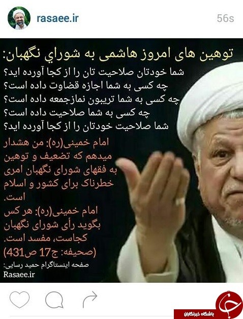 به گزارش زاهدانه به نقل از خبرنگاران جوان حمید رسایی در صفحه اینستاگرام خود نسبت به سخنان آیت الله هشمی رفسنجانی واکنش نشان داد.