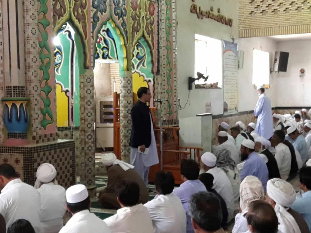 زاهدنیوز/محمدامیربراهویی معاون خدمات شهر شهرداری زاهدان به مناسبت عیدقربان و آغاز "هفته دولت" در جمع نمازگزاران محله کارخانه نمک مسجد جامع عثمانیه حضور یافت و قبل از خطبه های نماز جمعه به ایراد سخن پرداخت.