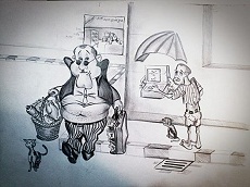 کاریکاتوری با عنوان سبد کالا و یارانه از آثار محمودرضا گنجعلی هنرمند طراح و مجسمه ساز شهرستان زاهدان