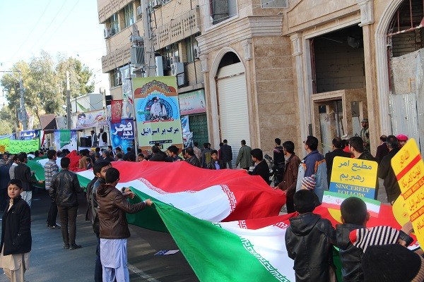 زاهدانه، در سی و هشتمین زمستان از پیروزی انقلاب همواره شاهد حضور مردم برای شرکت در راهپیمایی 22 بهمن هستیم بگونه ای که بار دیگر اقشار مختلف مردم ولایتمدار زاهدانی پرشورتر از سال های قبل با لبیک به ندای رهبر معظم انقلاب و نشان دادن اقتدار ایران اسلامی در صحنه جهانی حضور یافتند و با سردادن شعارهایی با مضمون "مرگ برآمریکا"، " مرگ بر اسرائیل"، " درود بر خمینی" و "این همه لشگر آمده به عشق رهبر آمده"، همنوا با ملت ایران، بار دیگر حماسه ای از عزت و اقتدار ایران و ایرانی را به نمایش گذاشتند.