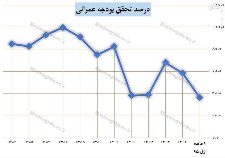 از ابتدای دولت نهم در سال 1384 تاکنون، تحقق 36 درصدی بودجه عمرانی در سال جاری بدترین عملکرد محسوب میشود.