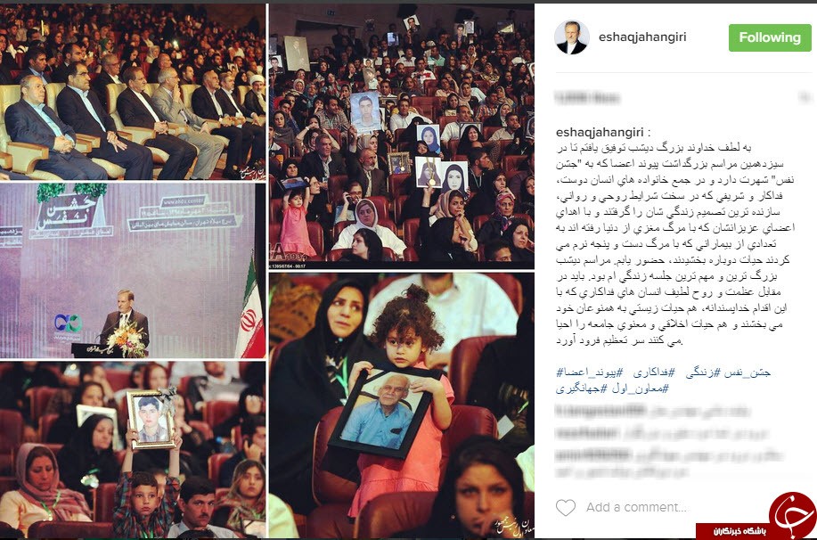"به لطف خداوند بزرگ ديشب توفيق يافتم تا در سيزدهمين مراسم بزرگداشت پيوند اعضا كه به "جشن نفس" شهرت دارد و در جمع خانواده هاي انسان دوست، فداكار و شريفي كه در سخت شرايط روحي و رواني، سازنده ترين تصميم زندگي شان را گرفتند و با اهداي اعضاي عزيزانشان كه با مرگ مغزي از دنيا رفته اند به تعدادي از بيماراني كه با مرگ دست و پنجه نرم مي كردند حيات دوباره بخشيدند، حضور يابم. مراسم ديشب بزرگ ترين و مهم ترين جلسه زندگي ام بود. بايد در مقابل عظمت و روح لطيف انسان هاي فداكاري كه با اين اقدام خداپسندانه، هم حيات زيستي به همنوعان خود مي بخشند و هم حيات اخلاقي و معنوي جامعه را احيا مي كنند سر تعظيم فرود آورد."