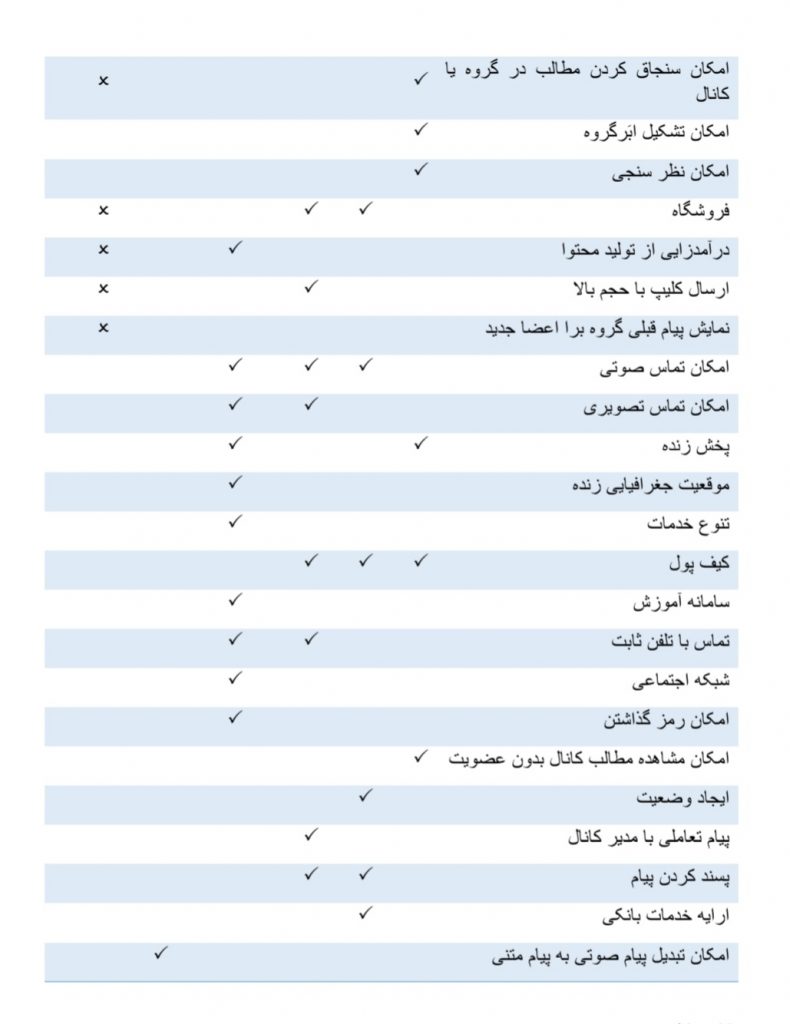 قابلیت استفاده از امکانات تعاملی در ارائه انواع خدمات اعم از پیامرسانی و مالی (مانند کانالهای رسمی شرکتها و سازمانها، کانالهای فروش کالا و خدمات و…).