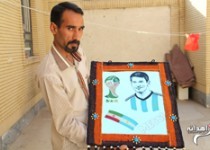 رمضان نورا هنرمند زاهدانی طراح و سازنده بزرگترین توپ سوزندوزی شده مسابقات جام جهانی، چهره بهترین فوتبالیست جهان را بر روی آینه طراحی نموده تا به وی هدیه بدهد.