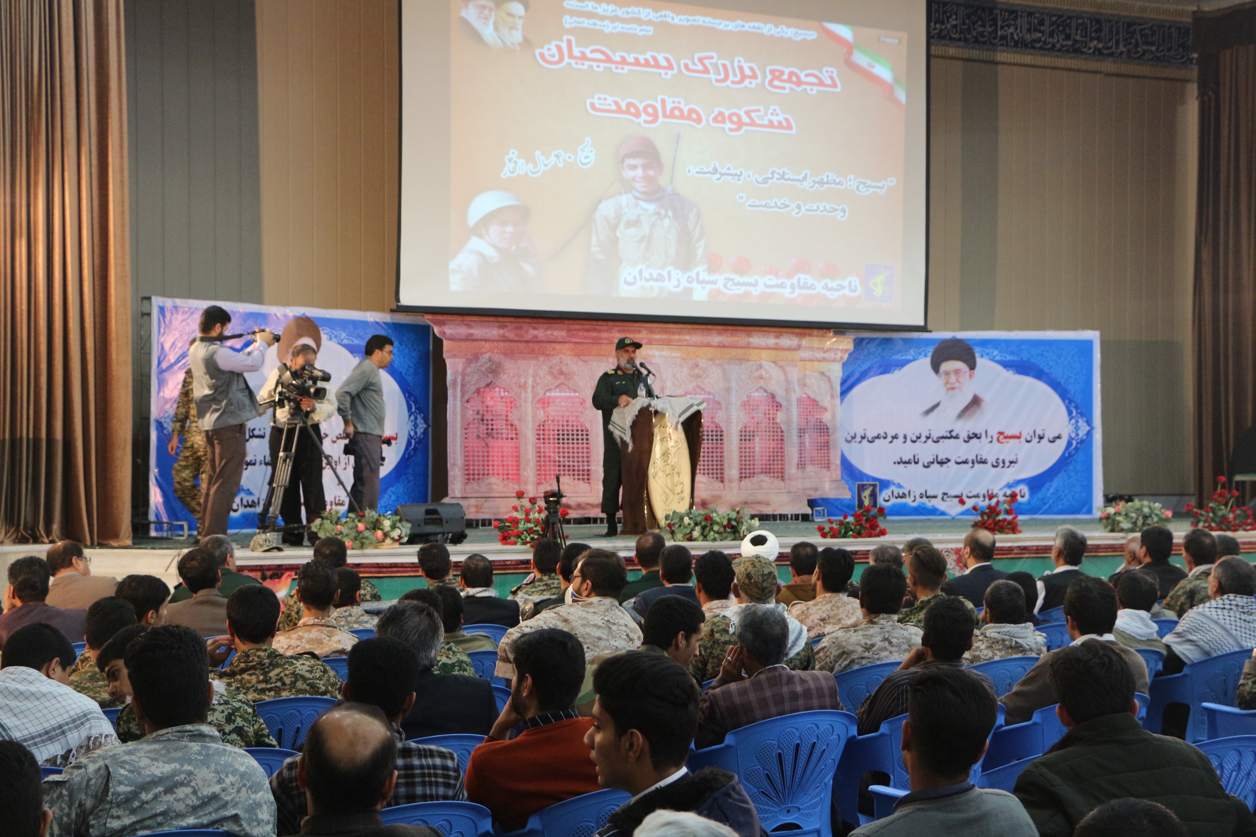 زاهدنیوز، سردار امان الله گشتاسبی در همایش "شکوه مقاومت" که با حضور گسترده هزاران بسیجی شیعه و سنی از اقشار مختلف در حسینیه عاشقان ثارالله زاهدان برگزار شد