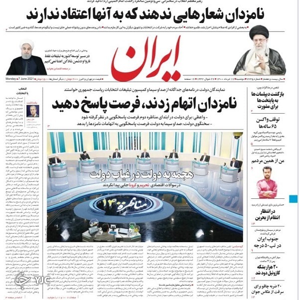 صفحه نخست روزنامه‌های سیاسی امروز (دوشنبه ۱۷ خرداد) را در ادامه مشاهده می‌کنید.