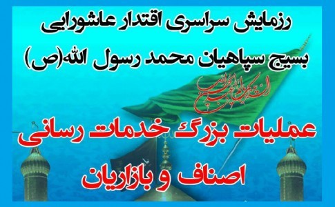 همزمان با سراسر کشور در قالب رزمایش سراسری اقتدار عاشورایی بسیج سپاهیان محمد رسول الله (ص)، عملیات بزرگ خدمت رسانی اصناف و بسیجیان طعم شیرین