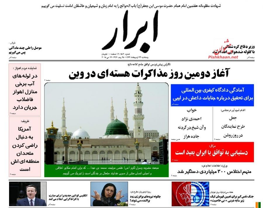 ابرار ، پنجشنبه ۲۴ ارديبهشت ۱۳۹۴