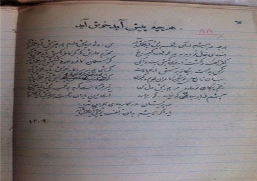 وی این شعر را طبق آنچه ثبت کرده در سال 1309 سروده است. در ذیل تصویر دست خط منتشر میشود. او به دلیل اینکه حسابدار بانک کشاورزی بود خط زیبایی داشت.