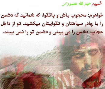 ای کاش اونایی که دم از آزادی می زنن و کشف حجاب می کنن، زمانی که پیکر پاک و مطهرهمین جوونهای رشیدی که برای آزادی من و تو برای ما جوون دادن و در مقابل دشمن ایستادگی کردند رو می دیدن تا باورشون می شد که روزی اونا هم مثل ما زندگی می کردن و حالا ما باید روزی پاسخگوی خون ریخته شده شون باشیم.