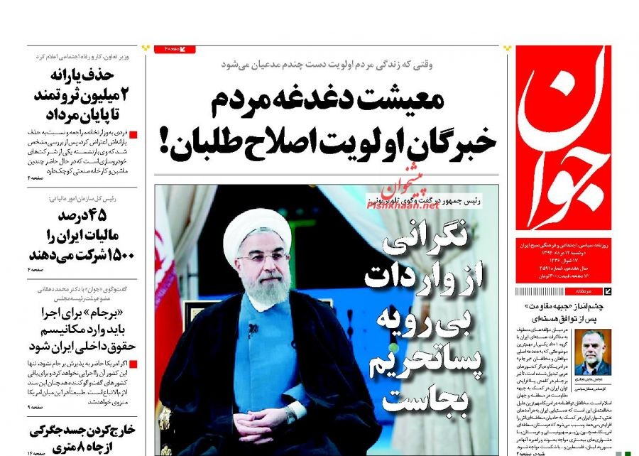 جوان ، دوشنبه ۱۲ مرداد ۱۳۹۴