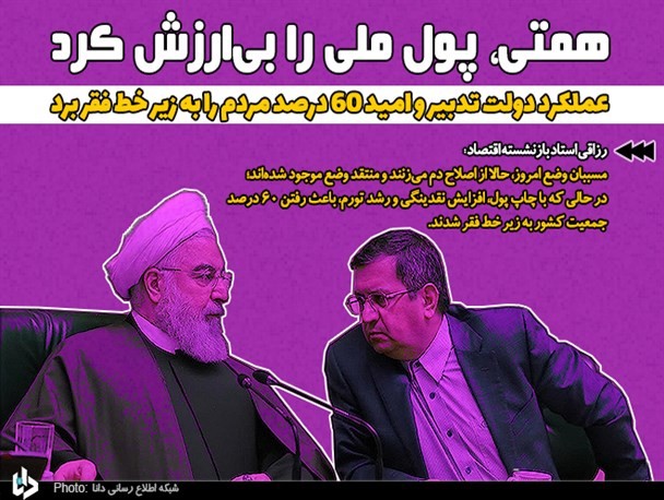 رزاقی گفت: همتی با چاپ پول سادهترین راه را انتخاب کرد و کاری به مراتب بدتر از عملکرد مدیران قبلی که خود که منتقد آنها بود را انجام داد. او دلارهایی که هنوز به ایران نرسیده بود را به ریال تبدیل کرده و ارزش پول ملی را با افزایش نقدینگی به شدت پایین کشید.