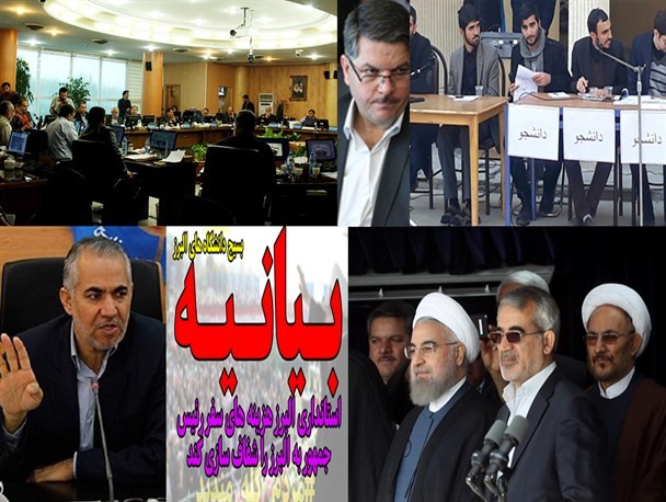 به گزارش زاهدانه به نقل از «تیتریک»؛ اخبار منتشر شده از حواشی سفر هیات دولت در آبان ماه سال جاری به البرز، اخیرا در سرخط خبرهای این استان قرار گرفته و حواشی و واکنش های گوناگونی را در پی داشته است، اما علی رغم آن تکلیف آنها مشخص نشده است. متن زیر به بررسی روند این حواشی می پردازد. اپیزود اول: نشت خبر صبح روز 2 اسفند سال 1395، شبکه خبری تحلیلی "تیتر1"، خبری را منتشر کرد: لیست هزینه های سفر هیات دولت به البرز/هزینه یک میلیارد و هشتصد میلیونی شهرداری کرج برای سفر یک روزه هیات دولت به البرز + سند به لطف کانال ها و شبکه های اجتماعی خبر به سرعت در شهر پیچید. عصر همان روز عده ای که خود را جوانان انقلابی می خواندند کمپینی را با عنوان "پویش مردمی اعتراض به هزینه های نجومی سفر رئیس جمهور به کرج" در تلگرام راه اندازی کردند.خبر به سرعت در شهر پیچید. اپیزود دوم: مطالبه گری مردم و همراهی امام جمعه شنبه 5 اسفند بیانیه ای از طرف اقشار مختلف مردم منتشر شد:خادمان ملت در کرج پول بیت المال را بی حساب هزینه می کنند/ سازمان بازرسی ورود کند. در بخش پایانی این بیانیه نوشته شده: از سازمان بازرسی کل کشور و همچنین مجلس شورای اسلامی (کمیسیون های تخصصی) درخواست می شود تا بعنوان دستگاه های نظارتی هرچه سریعتر به این قضایا ورود کرده و اسراف گران بیت المال (در هر کسوت ، لباس و سابقه ای) را به مردم شناسانده و بر اساس قانون با آنان برخورد نمایند . فردای روز بیانیه ،نماینده ولی فقیه در استان البرز در خطبه های نماز جمعه هزینههای سفر هیئت دولت به استان را غیرقابلتوجیه خواند و خطاب به مسئولان گفت: به چه مجوزی ناهار سفر هیئت دولت آنهم در یک روز ۵۰۰ میلیون تومان شده است. اپیزود سوم: دانشجو بیدار است دوشنبه 9 اسفند تشکل های انقلابی بسیج دانشجویی دانشگاه خوارزمی کرج از شهردار این کلانشهر خواستند تا به روی صندلی داغ و مقابل تریبون پاسخگویی حاضر شده و در خصوص هزینه کردن میلیاردی شهرداری برای سفر رئیس جمهور به کرج توضیح دهد . منطقه آزاد بدون حضور شخص شهردار و یا نماینده از وی برگزار می شود. 11 اسفند بسیج دانشجویی دانشگاه خوارزمی کرج، بیانیه خود را منتشر می کند: اسناد را واقعی و مستند ندانستید، مستند سازی کنید/ به جای پاس کاری شفاف سازی کنید دانشجویان نوشتند: لازم است بدانید اگر هزینه ی این سفر غیر واقعی بود، و به اسناد آن نمی توانید اعتنایی کنید، چرا شهردار کرج به جای پاسخگویی به مطالبات دانشجویان در دانشگاه خوارزمی، فرار را بر قرار ترجیح دادند، قرار ما روز دوشنبه ۹ اسفند بود ولی اعتنایی نکردند. لازم است بدانید که نا معتبر کردن ارقام وارده و اسناد بر ملاشده می تواند به معنای ذخیره کردن بیت المال برای عده ای خاص و اختلاس در نظر گرفته شود، گفته اید مبالغ صرف شده کم تر است، ولی واقعیت صرف مبلغ بیشتر از مصوبه های نجومی دارد، وظیفه ی شما ایجاد شفافیت به همراه اسناد قابل اتکاست هفته دوم انتشار خبر ، دانشجویان در نماز جمعه به روشنگری و طرح سوال از شهردار می پردازند. جلسه طرح سوال در دانشگاه ازاد اسلامی کرج بدون حضور مسئولین برگزار شد. اپیزود چهارم: تکذیبیه 9 اسفند خبری از طرف روابط عمومی استانداری البرز منتشر و مدعی شده است که هزینههای اعلام شده کذب و با هدف مقاصد سیاسی مطرح شده و میشود! در این تکذیبیه امده است: لیست منتشر شده غیرواقعی و غیرمستند بوده و صرفاً به منظور مقاصد سیاسی انجام گرفته است که البته در جایگاه خود قابل پیگیری است.هزینه واقعی صورت گرفته در این سفر بسیار کمتر از هزینه سفرهای مشابه به استان بوده که بخش اعظم آن، هزینه های سرمایه ای و ماندگار برای استان و بخش کمی نیز مربوط به امور جاری بوده است.از طرف دیگر، سفر دوم ریاست محترم جمهوری به استان البرز نیز که به منظور افتتاح پالایشگاه غلات انجام شد، سفری نیم روزه بود و رییس محترم جمهوری و هیات همراه ایشان ناهار را میهمان البرز نبودند. اپیزود پنجم: دم خروس 10 اسفند روح الله کیان عضو شورای شهر