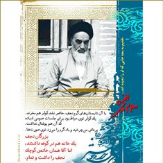 حجت الاسلام اصغری حسامیه از زندگی امام راحل در مدت زمانی که ایشان در نجف اقامت داشتند، گفت: یک روز همسر امام به ایشان گفتند اگر امکان دارد ما از وجوهات برای خنک کردن منزل پنکه ای بخریم، امام فرمودند: نه، چطور من بتوانم برای خود پنکه ای تهیه کنم در صورتی که مردم ایران از همین امکانات هم محروم هستند.