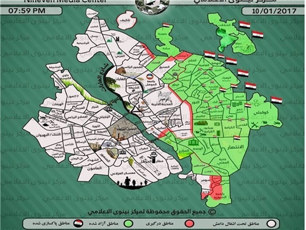 به گزارش زاهدانه به نقل از راه دانا؛ نیروهای عراقی امروز در بخش شرقی شهر موصل توانستند منطقه «السکر» را به طور کامل از اشغال تروریستهای خارج سازند. بنا به اعلام شبکه السومریه، نیروهای «مبارزه با تروریسم» پرچم عراق را بر بالای ساختمانهای این منطقه برافراشتند و از سوی دیگر نیروهای عراقی به دانشگاه موصل نزدیک شدهاند. همچنین نیروهای عراقی مناطق «فلسطین» و «دومیز» را آزاد کردهاند. منطقه «الضباط» که در ساحل دجله قرار دارد نیز به طور کامل پس از 4 روز درگیری به کنترل نیروهای مبارزه با تروریسم در آمد. یک مقام نظامی به خبرگزاری رویترز گفته است که نیروهای عراقی همجنان به پیشروی ادامه میدهند اما این تحرک به علت استفاده داعش از مردم عادی به عنوان سپر، کند و آهسته پیش میرود. بنا به این گزارش، مشکل اصلی در حال حاضر در موصل این است که تروریستهای داعش در بین مردم عادی پنهان میشوند و بنابراین پیشروی با احتیاط و آهسته صورت میگیرد و از سوی دیگر هر فردی از افراد غیر نظامی بخواهد از شهر فرار کند مورد اصابت تک تیراندازها یا خمپاره تروریستها قرار میگیرد.
