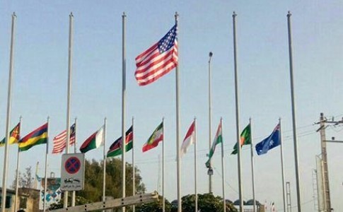 در سایه همایشی که بزرگترین نشست پسابرجام معرفی میشود پرچم آمریکا و انگلیس در شهر میزبان این نشست به اهتزاز در آمد که با واکنش مردم روبرو شد.
