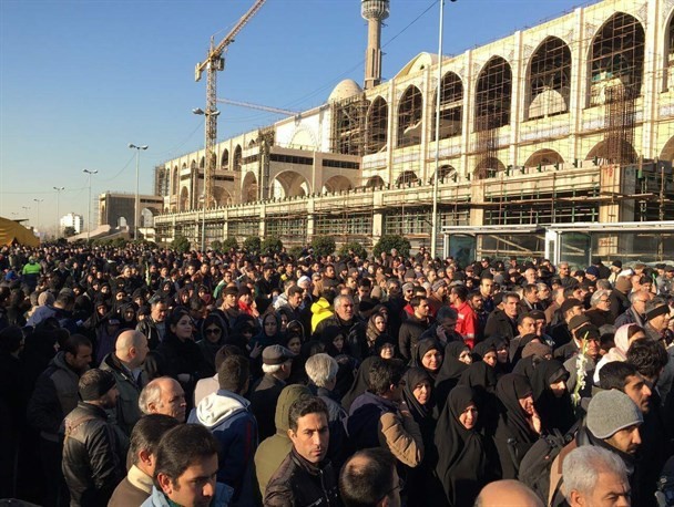 مردم در حال رساندن خود به محل تشییع پیکر شهدای آتشنشان هستند