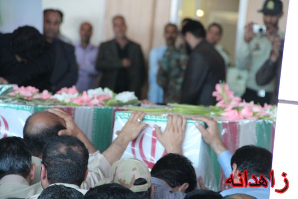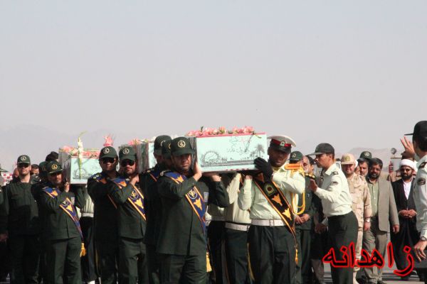 در این مراسم مسئولان، خانواده های معظم شهدا و ایثارگران و عموم مردم ولایی مردم زاهدان حضور داشتند و پیکر این شهدا را از فرودگاه بین المللی این شهرستان به سمت ستاد فرماندهی نیروی انتظامی بر دوش خود تشییع کردند و مردم با حضور پرشور خود بار دیگر با شهدا و آرمان های امام راحل تجدید میثاق کردند.