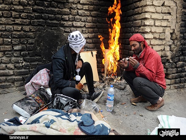با دهان پُر و دندانهای خرابش شروع به صحبت میند، طلبکارانه میگوید: ( برای چه اینجا آمدهاید؟ چه کار دارید؟ ) ابتدا میگوییم برای ساخت یک مستند آمدهایم و میخواهیم مشکلات شما را بشنویم. چند نفر غذا به دست دور ما حلقه میزنند، میگویند: ما مشکلی نداریم، کار داریم ( ضایعات فروش و زباله فروش) هستیم و غذا هم که داریم، فرد دیگری که خود را میثم معرفی میکند، جلو میآید و یک دسته اسکناس از جیبش در میآورد و میگوید: 29 سالهام، ببین این همه پول دارم، پدر و مادرم خارج هستند، زن و بچهام مسکو هستند، آنها برایم پول میفرستند، در ضمن در جنت آباد خانهدارم، اجاره میگیرم، مشکلی نداریم!! بهتر است جایی دیگر برای ساخت برنامه تان بروید.
