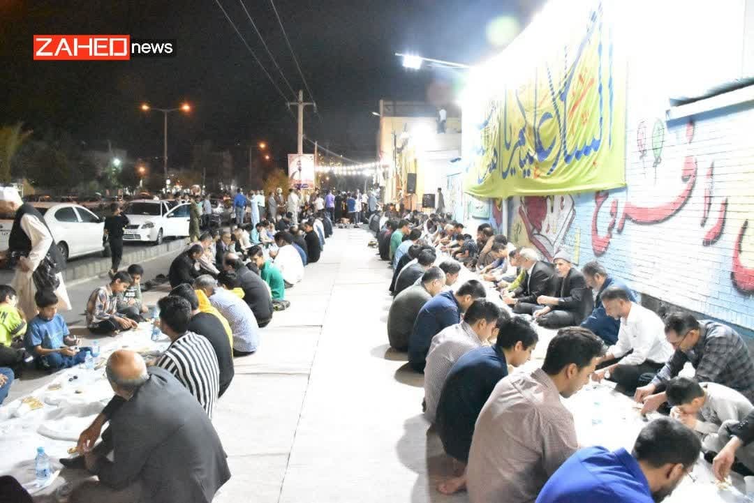 سفره ۳۱۳ متری افطار جهت اطعام روزهداران در زاهدان برپا شد/فیلم