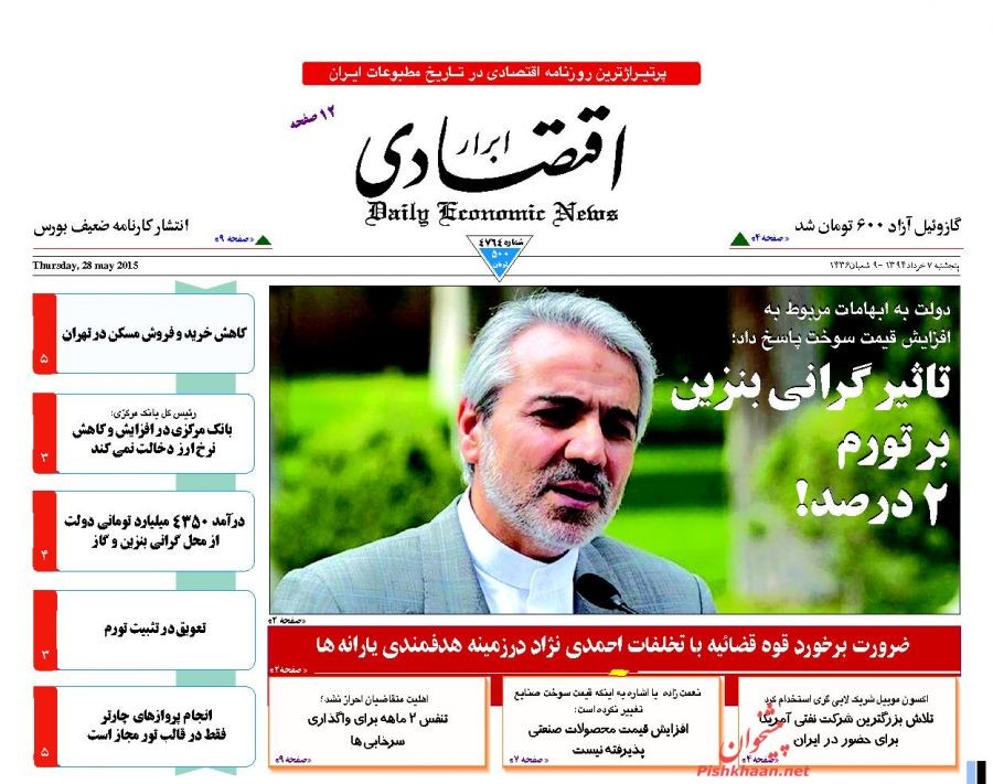 ابرار اقتصادی ، پنجشنبه ۷ خرداد ۱۳۹۴