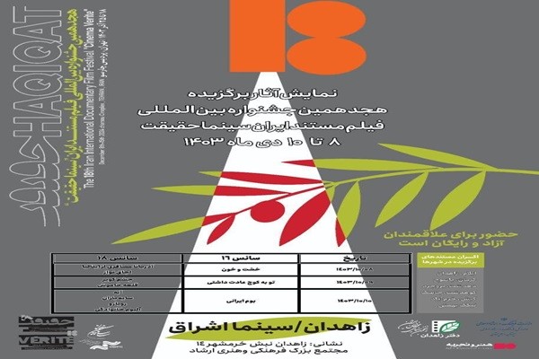 زاهدنیوز» به نقل از روابطعمومی اداره کل فرهنگ و ارشاد اسلامی سیستان و بلوچستان، عبدالسلام بلوچ زاده بیان کرد: آثار برگزیده هجدهمین جشنواره بینالمللی فیلم مستند ایران «سینما حقیقت»، از ۸ تا ۱۰ دیماه در سینما اشراق زاهدان نمایش داده شد و مورد استقبال استادان و هنرجویان انجمن سینمای جوانان زاهدان قرار گرفت.