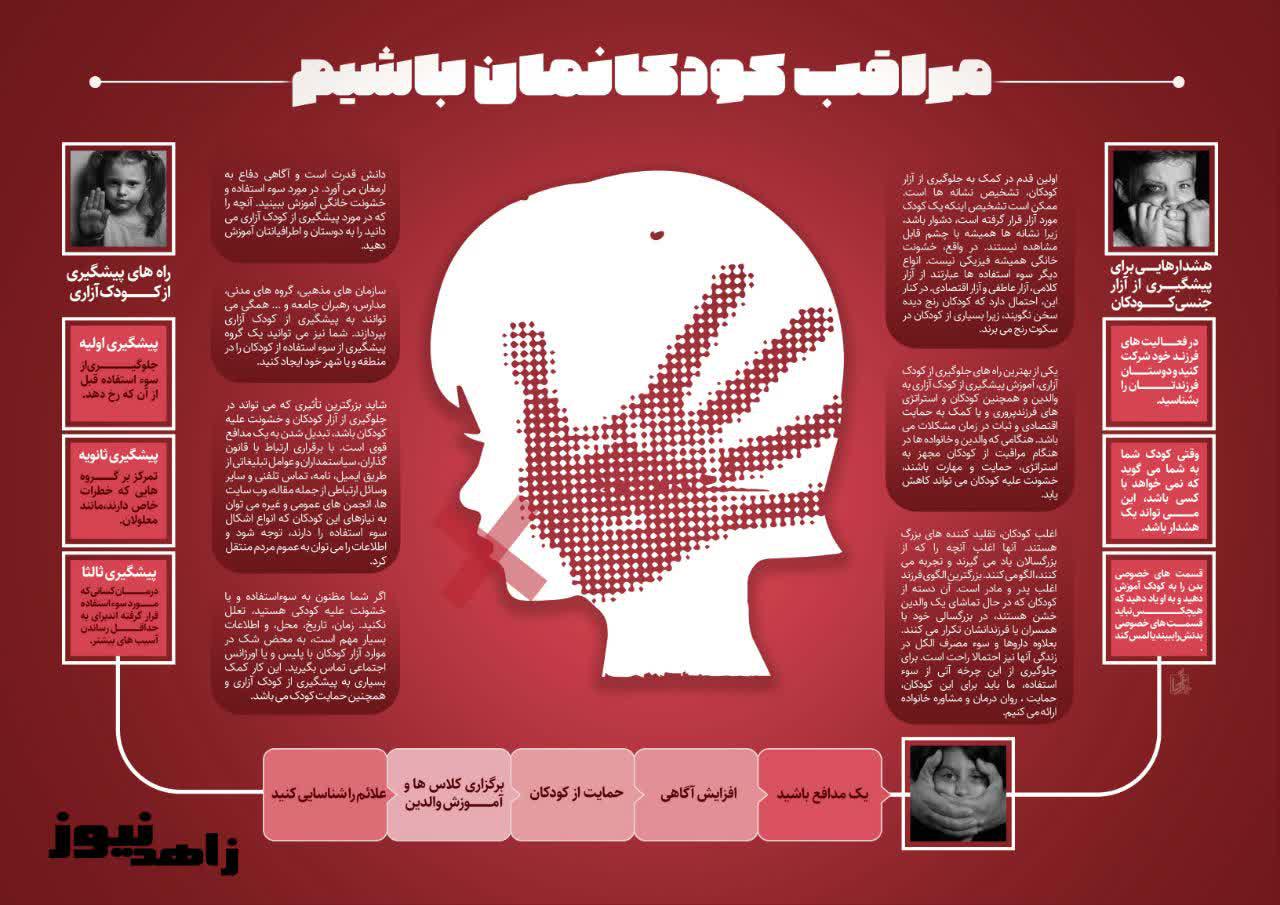 راه های پیشگیری از کودک آزاری را در پوستر «مراقب کودکانمان باشیم» بخوانید.