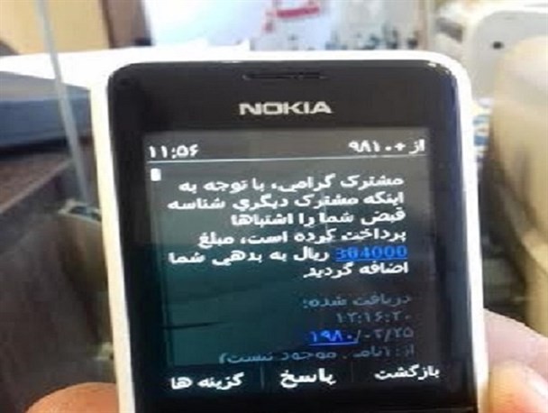وی تصریح کرد:حالا بعد از مدتی پیامکی حاوی این مطلب که "مشترک گرامی با توجه به اینکه مشترک دیگری شناسه قبض شما را اشتباها پرداخت کرده است مبلغ304000ریال به بدهی شما اضافه می گردد.