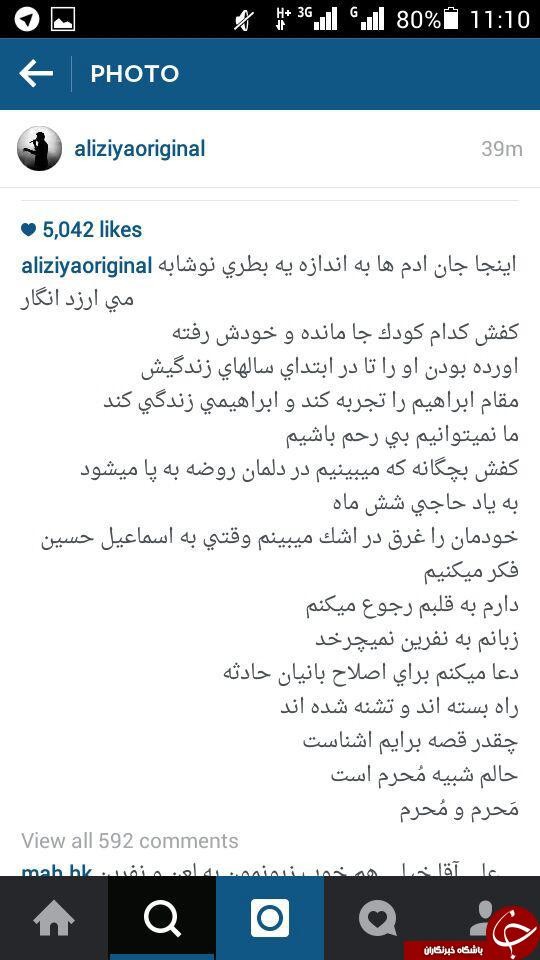 علی ضیا نیز خود پست جدیدی را در رابطه با این حادثه در اینستا گرام خود منتشر کرده است: