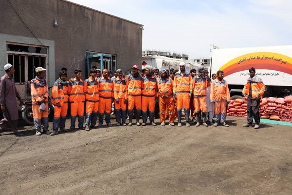 توزیع بیش از ۱۰۰ بسته معیشتی بین پاکبانان شهرداری زاهدان