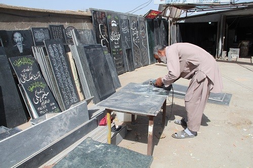 چندسال داری؟ازچه سالی کار دررشته سنگ تراشی را آغاز کرده ای؟60 سال سن دارم .زمان جنگ بود که بدنبال کاربودم تا اینکه بامردی اصفهانی آشناشدم که کارهای مربوط به تدفین شهدا را انجام می داد از آن زمان به بعد تقریبا33 سال است که مشغول بکارسنگتراشی برای اموات الخصوص شهدای استان هستم.