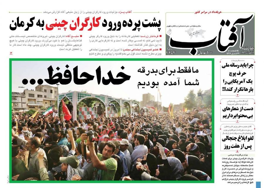 ایران ، چهارشنبه ۲۷ خرداد ۱۳۹۴