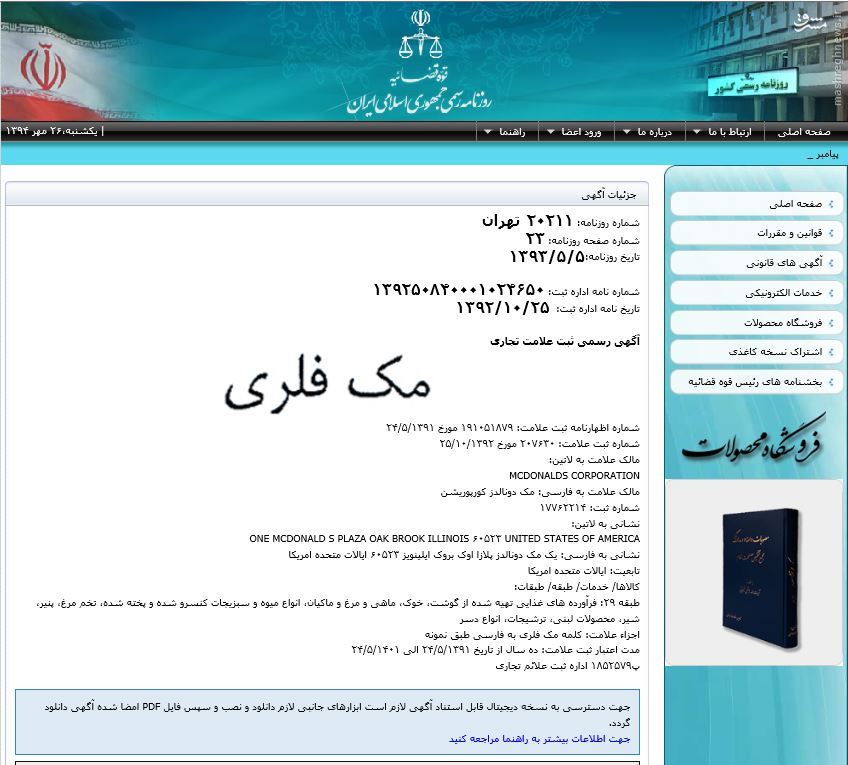 در حالی که کشورهای دیگر رو به سوی مبارزه با این نماد فرهنگی در کشور خود آورده اند و حتی طی اخبار چند ماه گذشته، شعبه های این صنایع غذایی در روسیه بسته شده اند، اولین دستاورد دولت یازدهم در دوران پسابرجام ، سیب زمینی سرخ کرده و همبرگر با برند مک دونالد آمریکایی برای ملت ایران است.