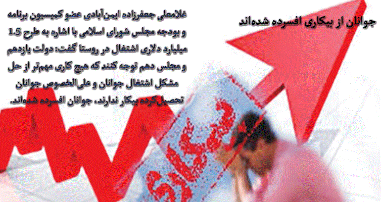 عضو کمیسیون برنامه و بودجه مجلس شورای اسلامی خطاب به رئیس جمهورگفت: هیچ کاری مهمتر از حل مشکل اشتغال جوانان و علیالخصوص جوانان تحصیلکرده بیکار ندارند، جوانان افسرده شدهاند.
