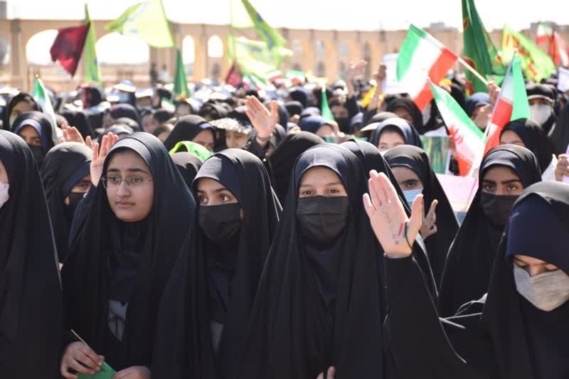 حفظ حجاب بانوان، مشتی محکم بر دهان دسمنان اسلام استیکی از دانش آموزان حاضر در این اجتماع گفت: پیام من به هم نوعانم این است که با حفظ حجاب میتوان بزرگترین ضربه را به آنهایی که می خواهند آئین و مرام اسلام نباشد، زد؛ و مشتی محکم بر دهان یاوه گویان و معاندین نظام جمهوری اسلامی ایران کوبید.