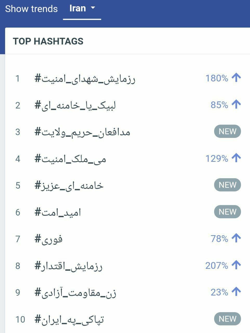 همچنین کاربران فضای مجازی همزمان با هشتگ فوق چهار هشتگ «#مدافعان_حریم_ولایت» و «#می_ملک_امنیت» (امنیت منطقه ما)، «#رزمایش_اقتدار» و «#تپاکی_په_ایران» (وحدت برای ایران) را در این پلتفرم ثبت کردند که به ترتیب در رتبههای سوم، چهارم، هشتم و دهم قرار گرفتند.