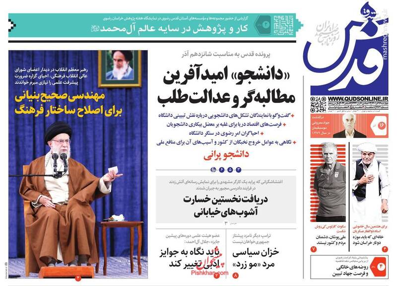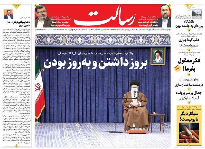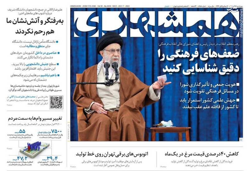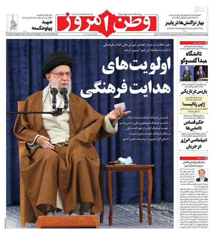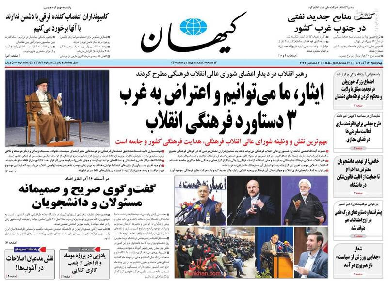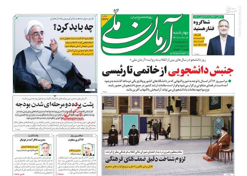 اولویت‌های هدایت فرهنگی، صدای دانشگاه، تغییر مسیر وام‌ها به سمت مردم، کسبه به توهم براندازها خندیدند!، از جمله تیترهای روزنامه‌ها در روز چهارشنبه ۱۶ آذر است.