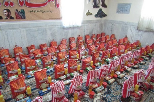 برنج ، روغن، حبوبات، ماکارونی و رب است و توسط خواهران بسیجی بین خانواده های کم بضاعتی که از قبل شناسایی شدند، توزیع شد.