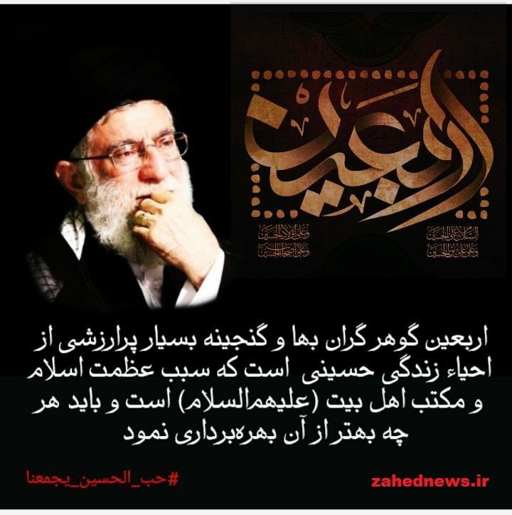 زاهدنیوز،رهبرانقلاب درباره اربعین حسینی می فرمایند: اربعین، تجلی عشق به تربت و مرقد سیدالشّهدا (ع) و آغاز جاذبه حسینی است که با وجود گذشت قرن های متمادی، همچنان دل همه دوستداران اهل بیت و همه آزادگان جهان را به سوی رستگاری و عزت و افتخار می کشاند.