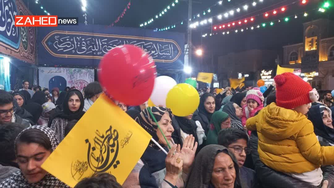 با نزدیک شدن به نیمه‌شب، آسمان زاهدان با نورافشانی‌های زیبا روشن شد. صدای تکبیر و صلوات از هر گوشه شهر به گوش می‌رسید و مردم با چشمانی پر از امید، ظهور منجی عالم بشریت را از خداوند طلب کردند.