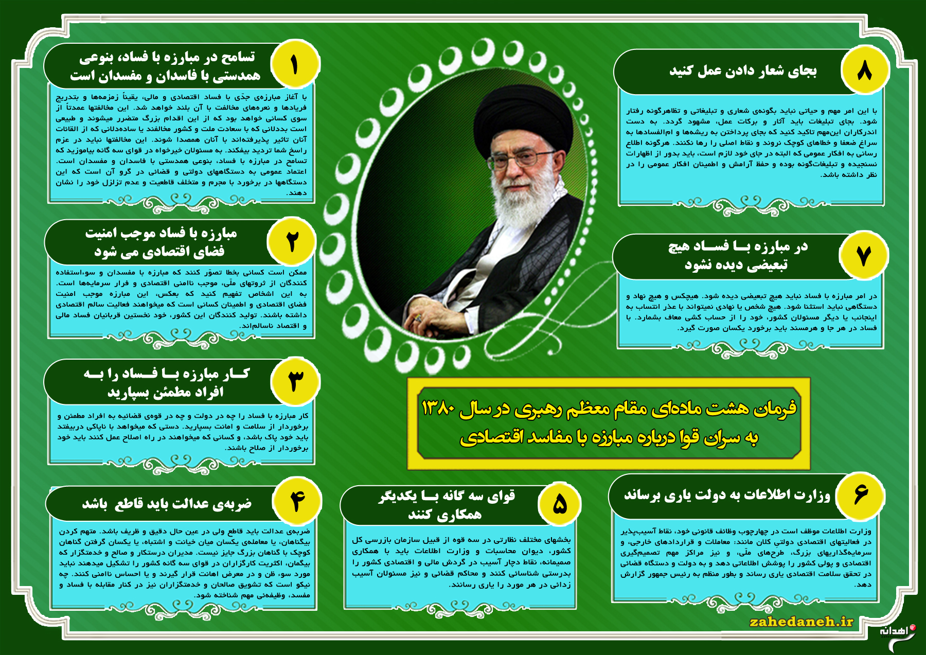 اینفوگرافی فرمان هشت مادهای مقام معظم رهبری درباره مبارزه با مفاسد اقتصادی